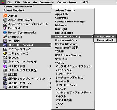 画面の解像度を変更したときにも位置が合わなくなるので、同様に位置合わせを する必要がある。位置合わせは簡単で、コントロールパネルのMagic Touch Utilの サブメニューにある Magic Touchを選択する(図3)。